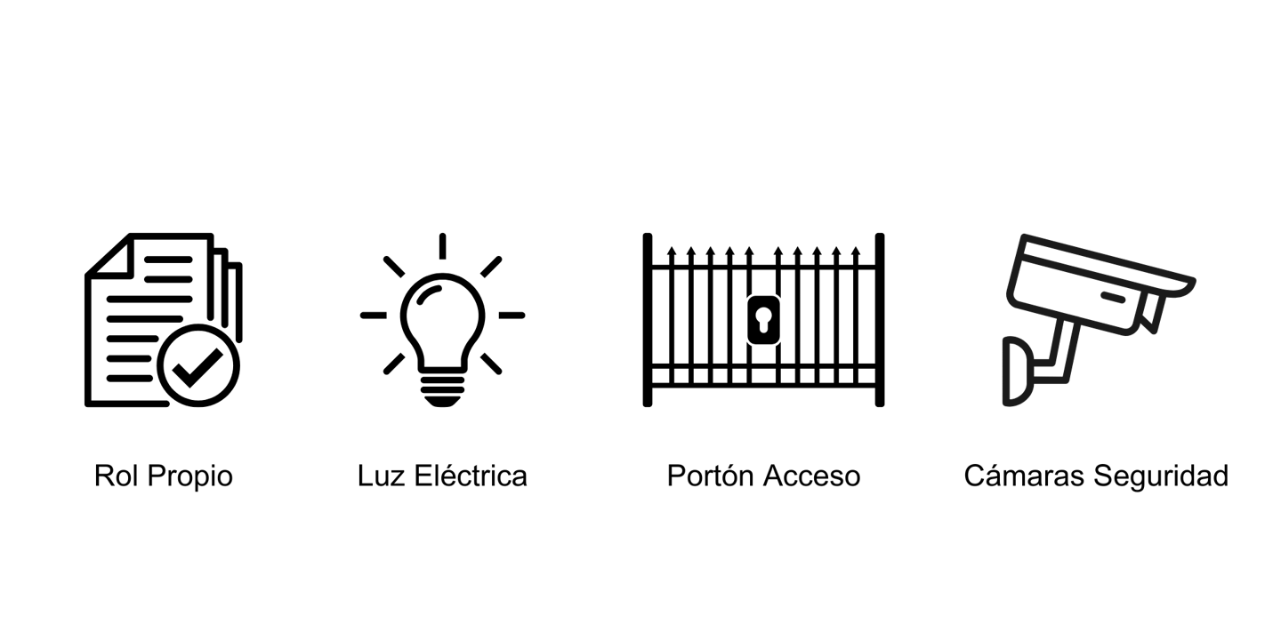 Los sitios cuentan con un sistema integral de seguridad que incluye portón eléctrico, acceso controlado, iluminación estratégica, cámaras de televigilancia y cercos perimetrales, asegurando un entorno confiable y tranquilo.